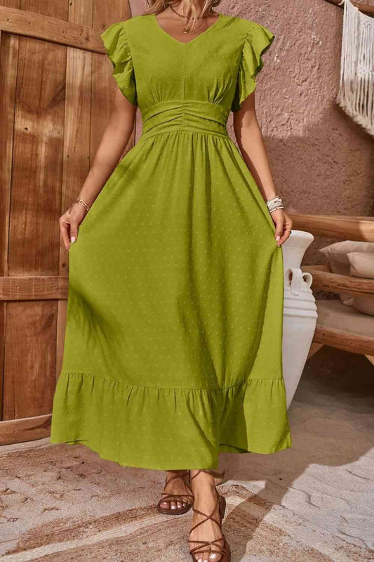 Swiss Dot V-Neck Flutter Sleeve Dress
