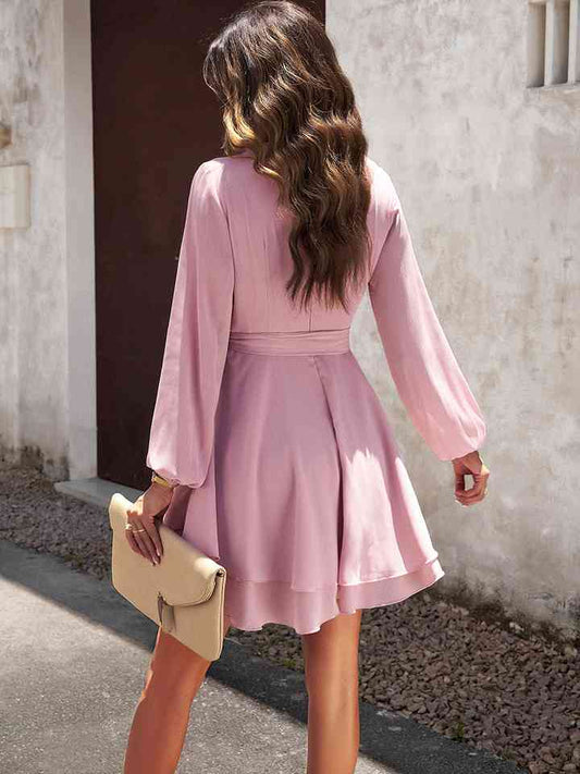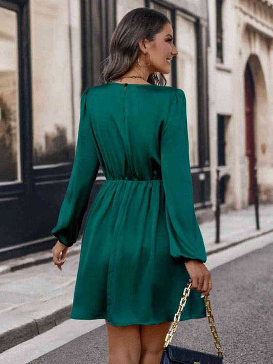 Ribbed Round Neck Long Sleeve Sweater Dress