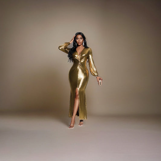 Sold outSheer Mesh Long Sleeve Slit Dress