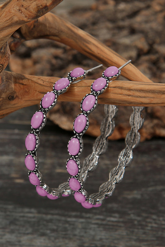 Sky Blue Turquoise Big Circle C-shaped Earrings