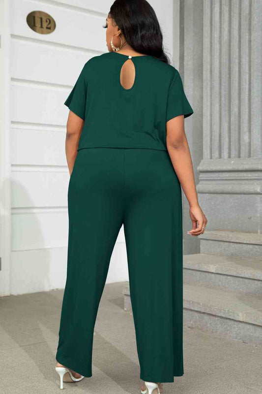 Plus Size Drawstring Waist Short Sleeve Jumpsuit
