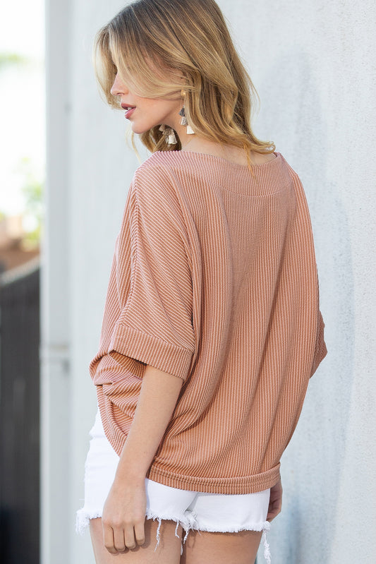 Gray Boatneck Batwing Sleeve Cording Blouse