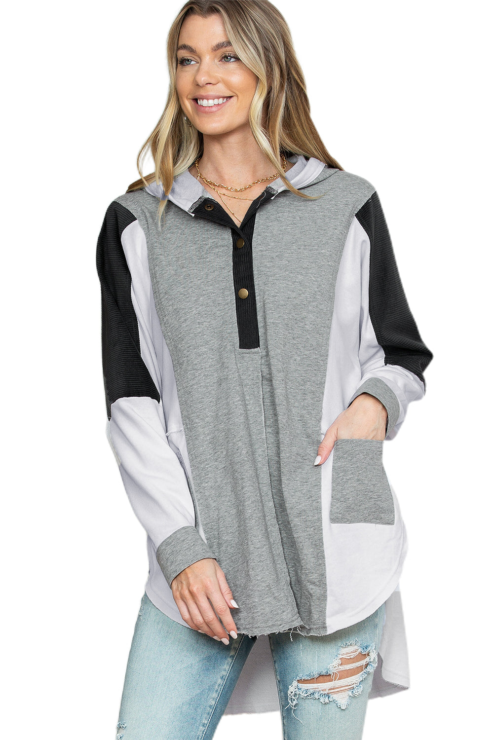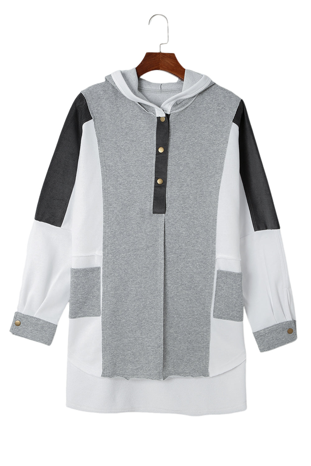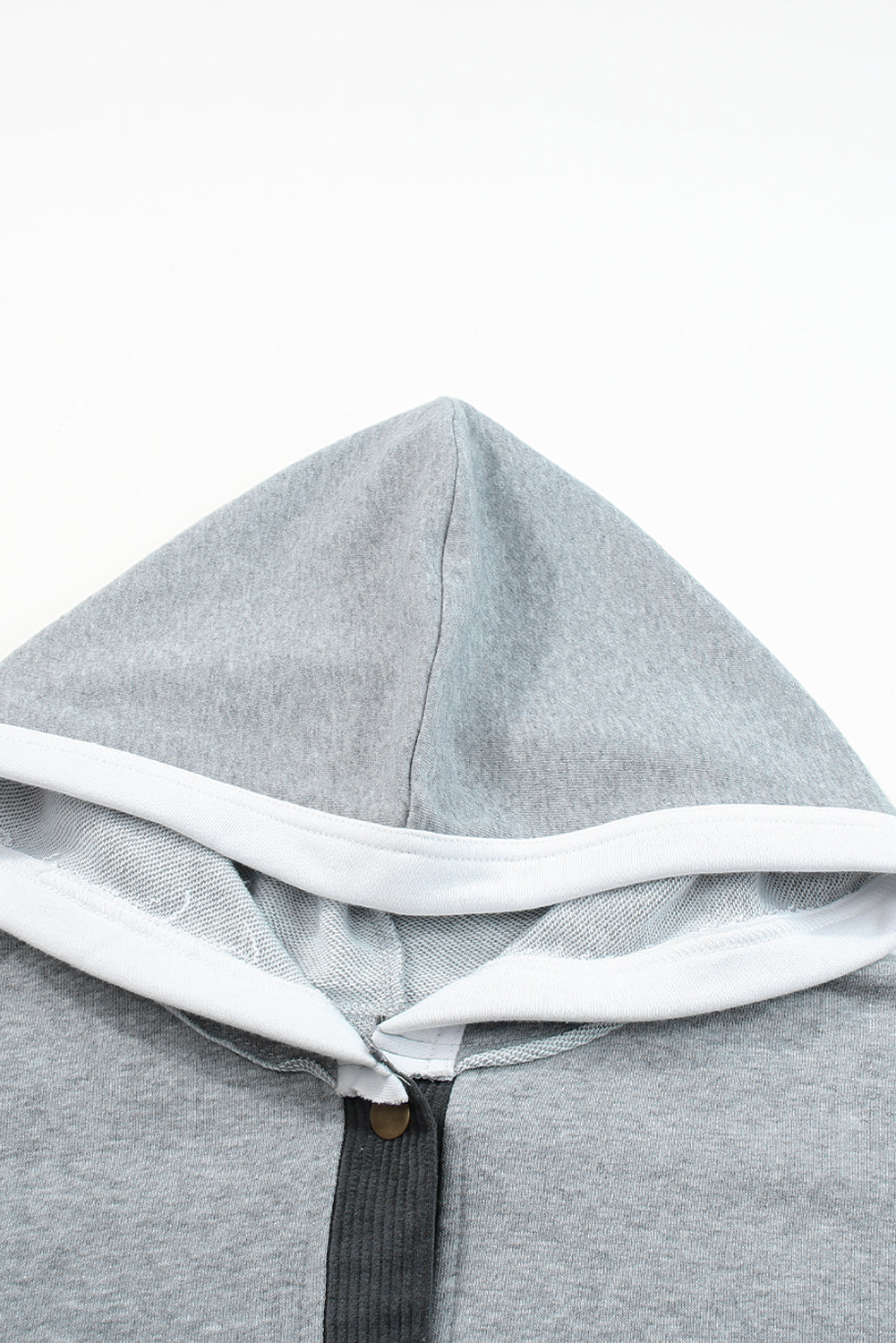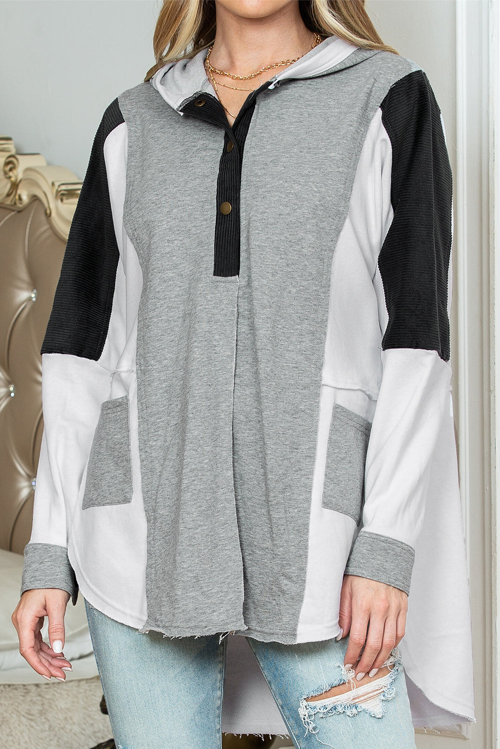 Black Color Block Snap Button Oversized Pullover Hoodie