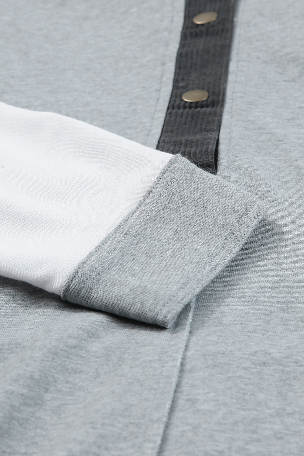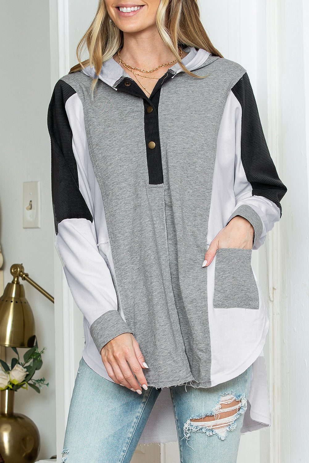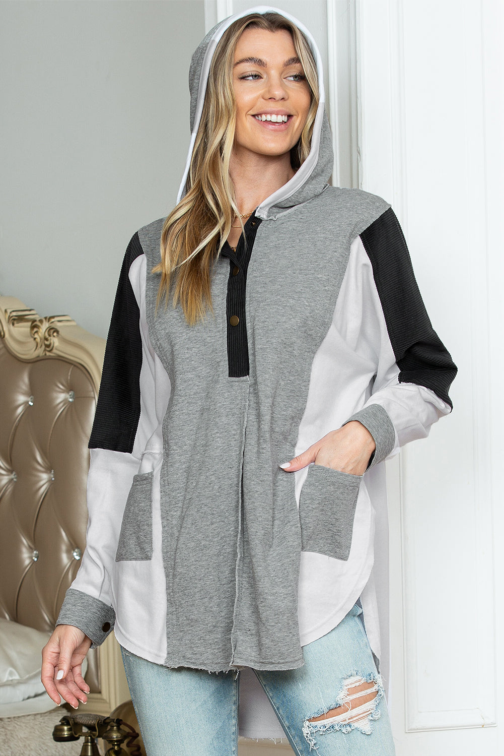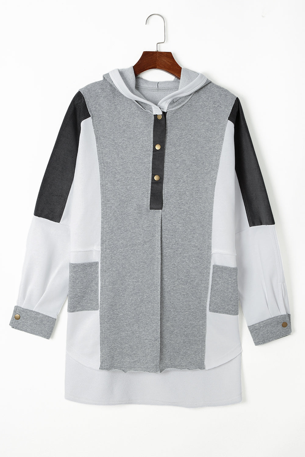Black Color Block Snap Button Oversized Pullover Hoodie