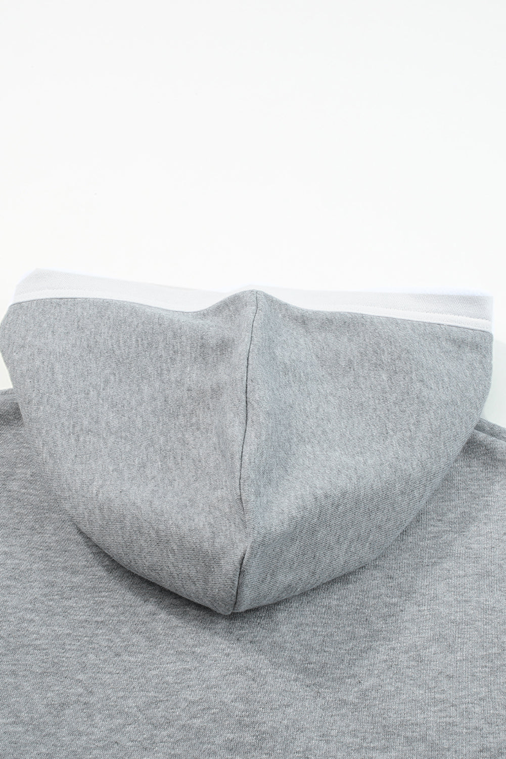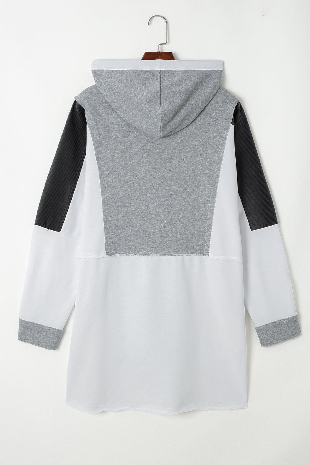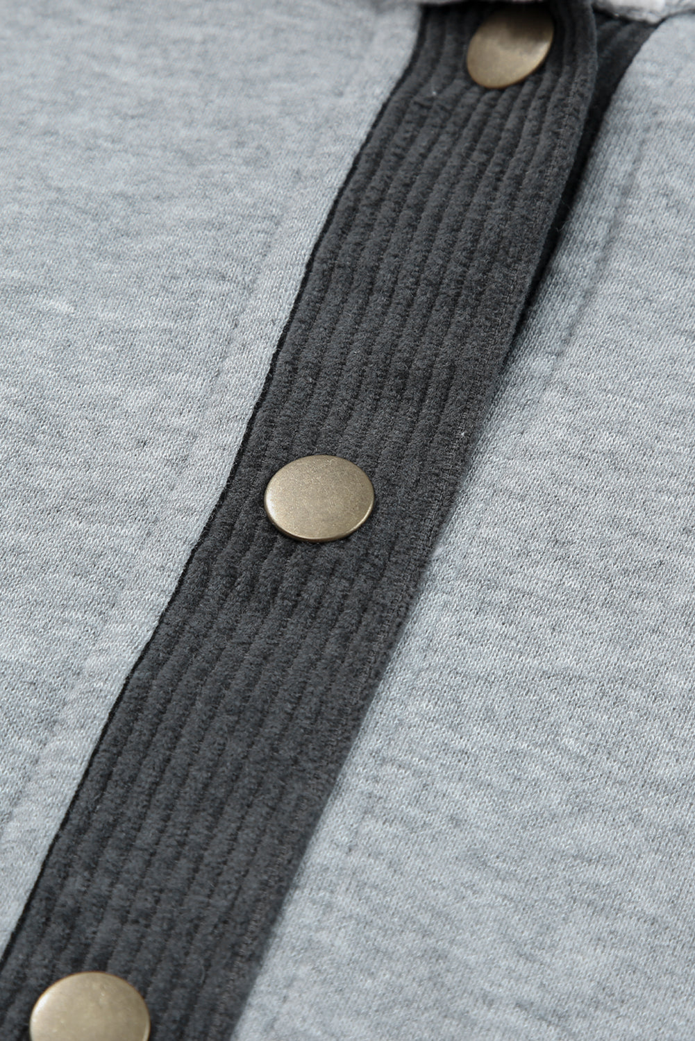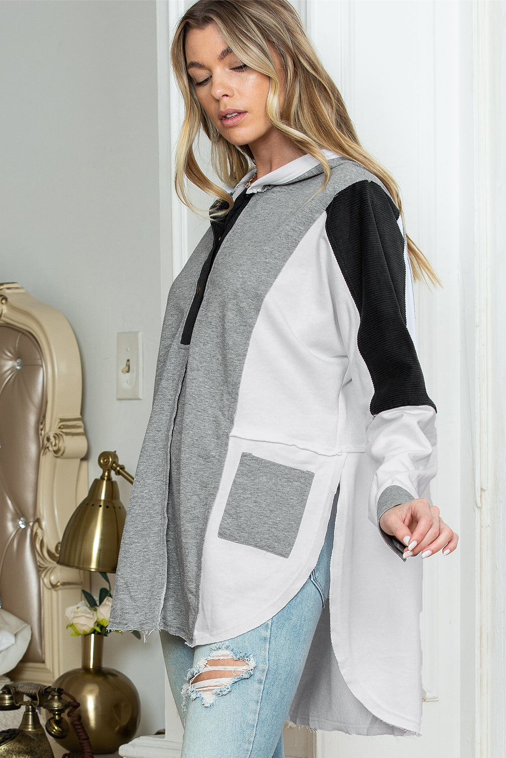Black Color Block Snap Button Oversized Pullover Hoodie