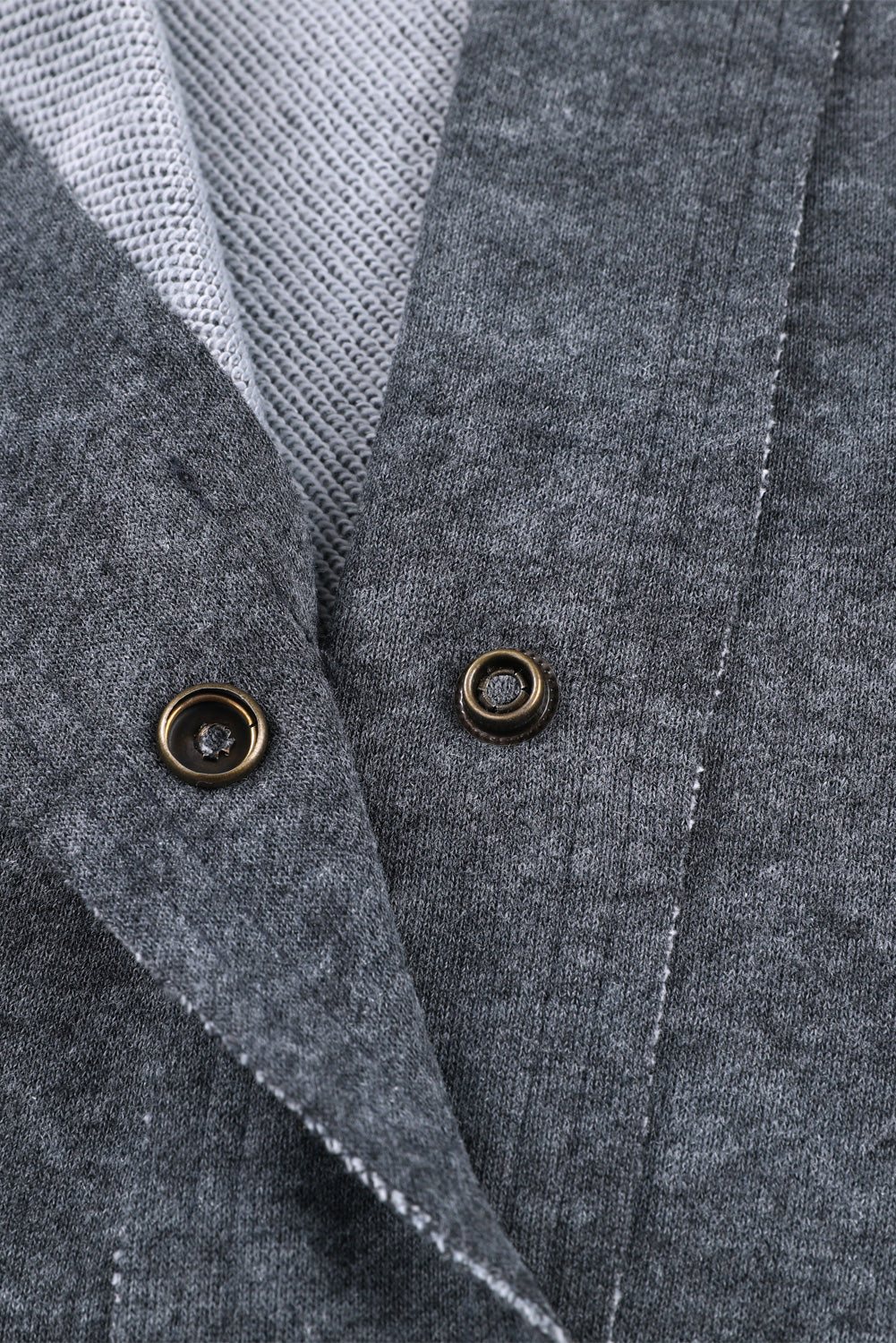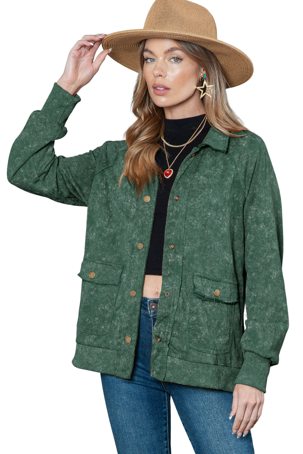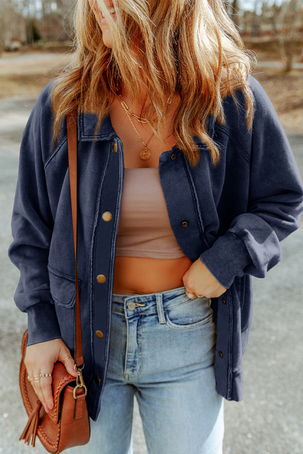 Dark Blue Snap Button Casual Flap Pockets Jacket