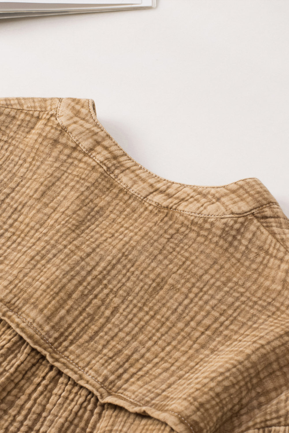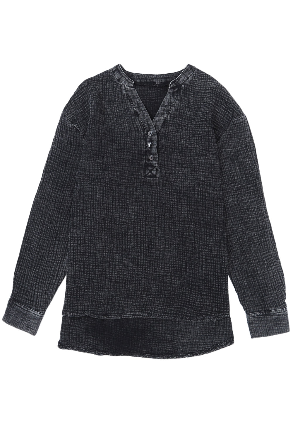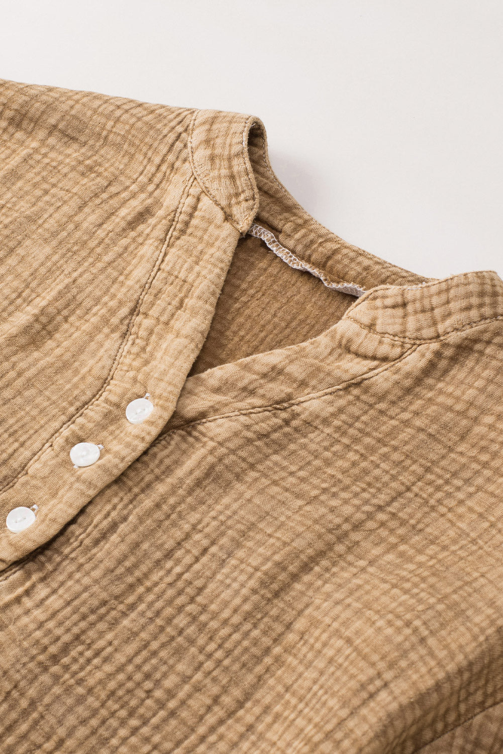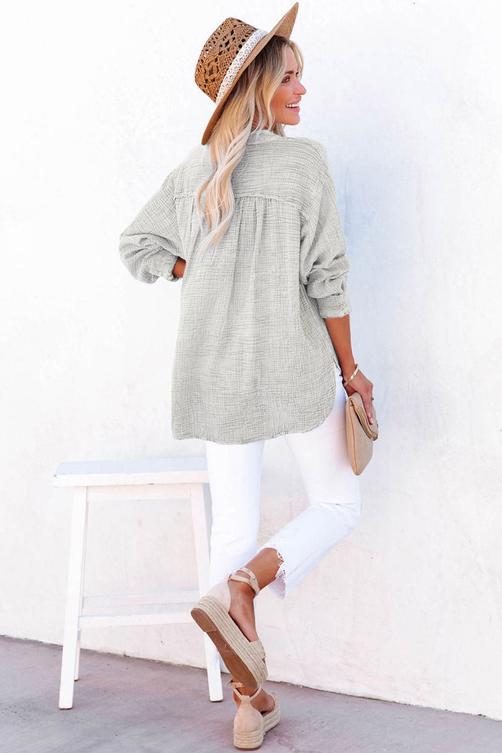- The grey color adds a refreshing touch, while the loose and crinkled texture gives it a relaxed and effortless look.
