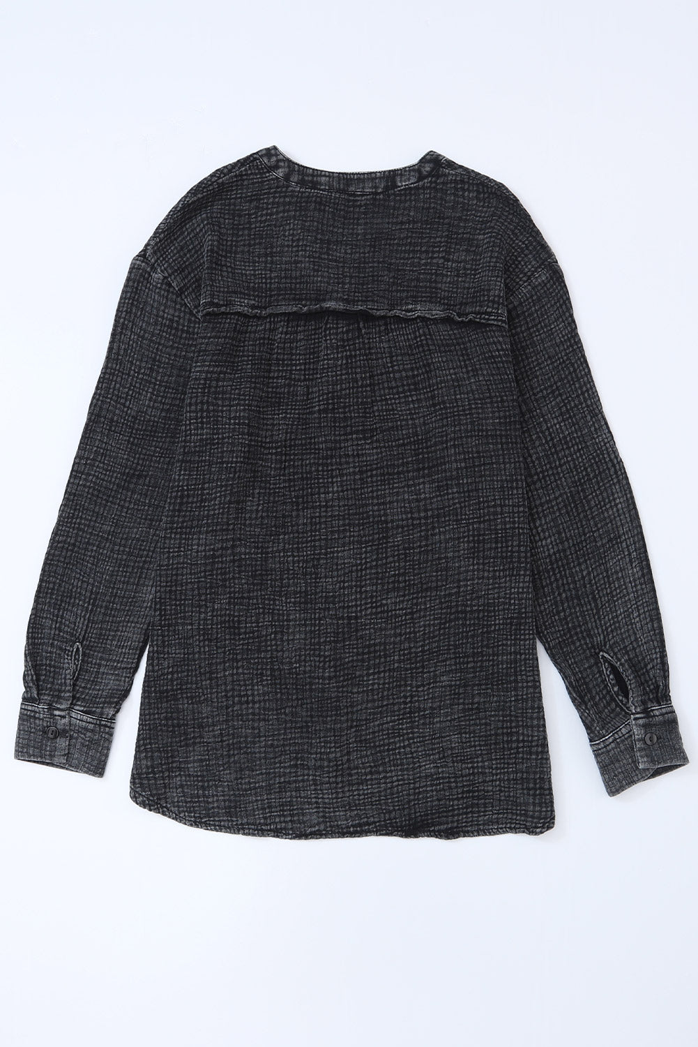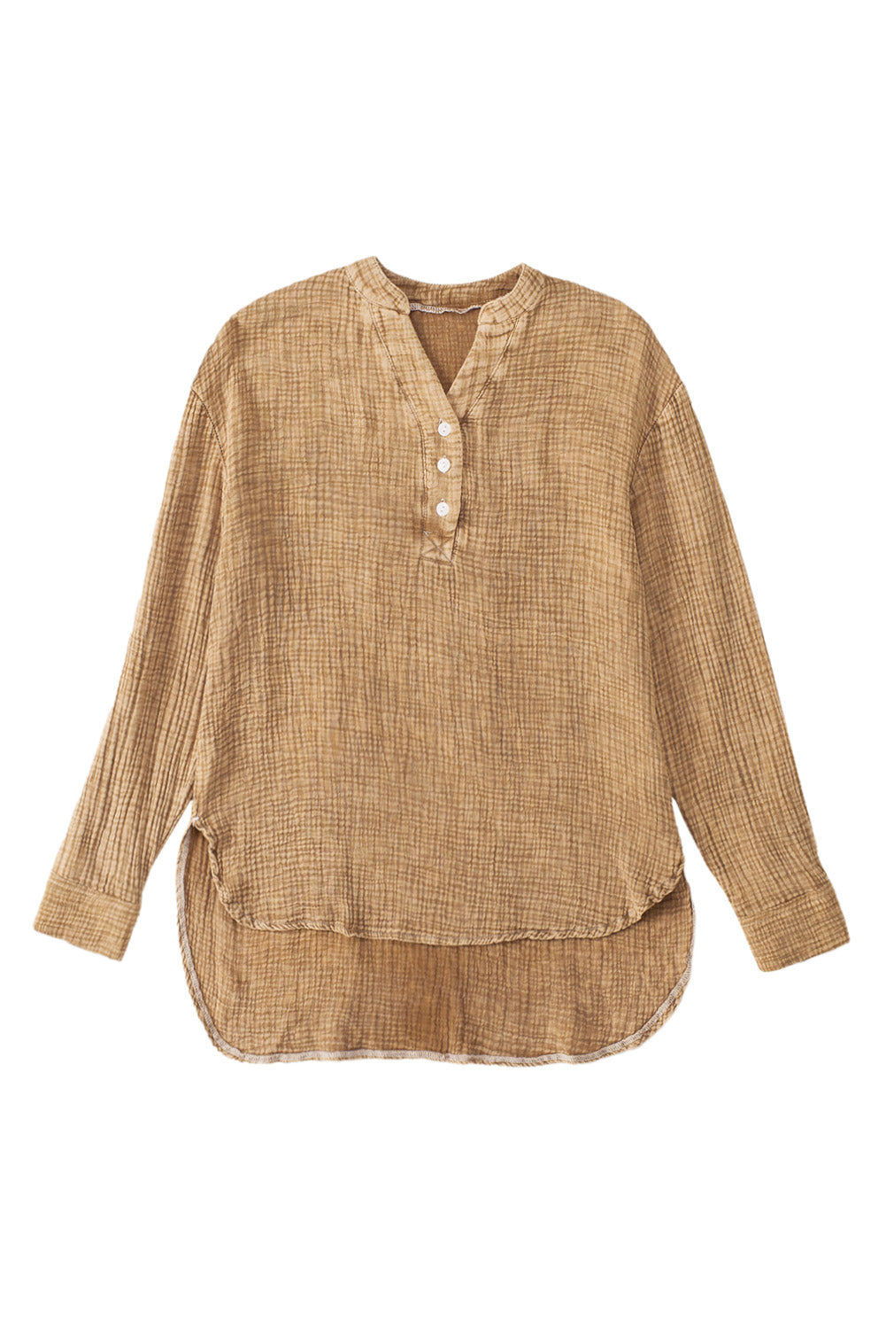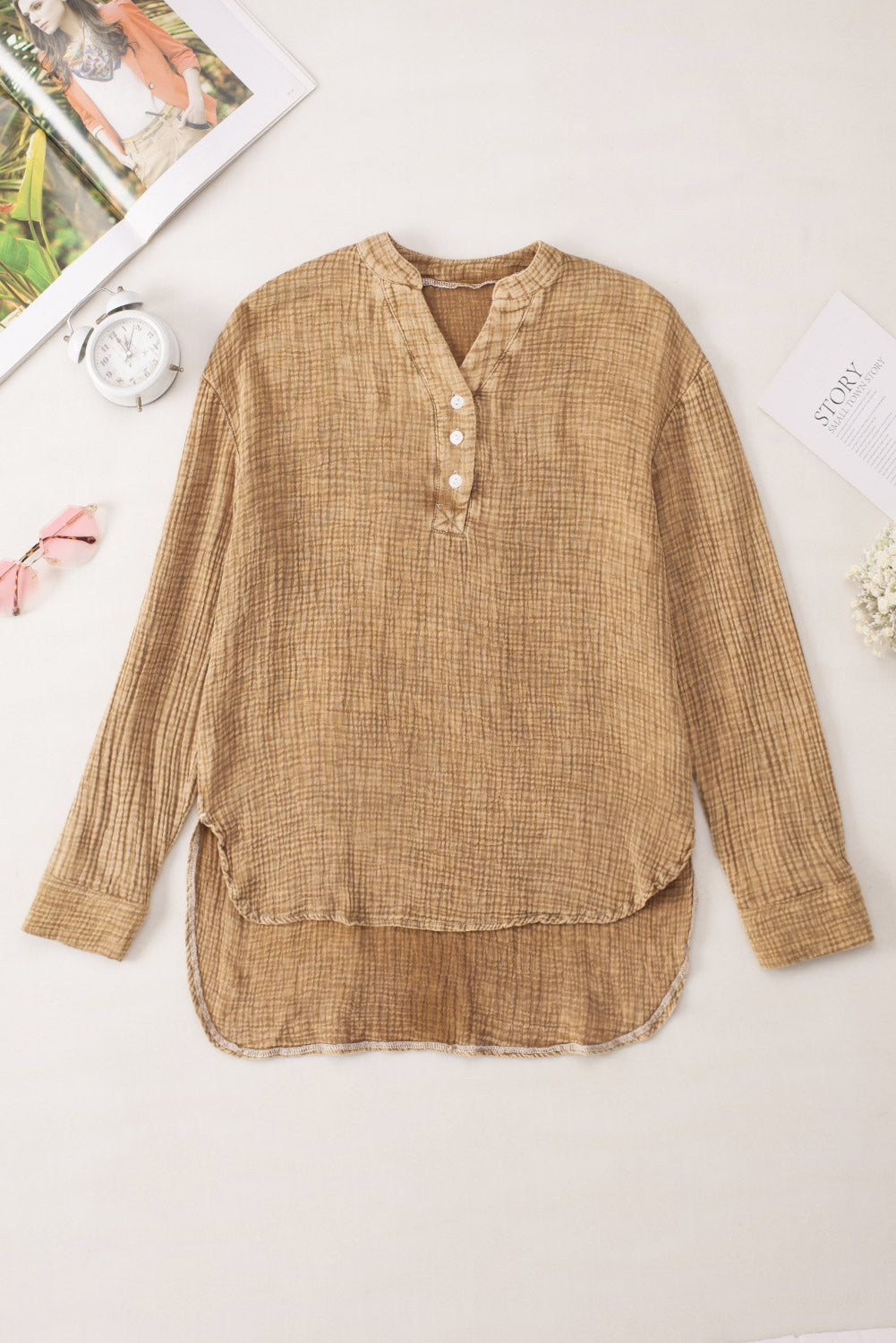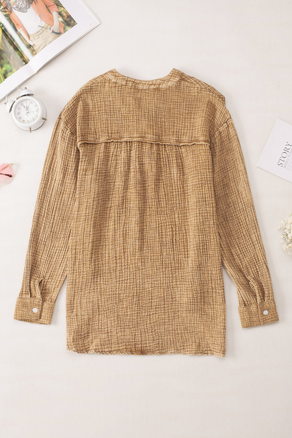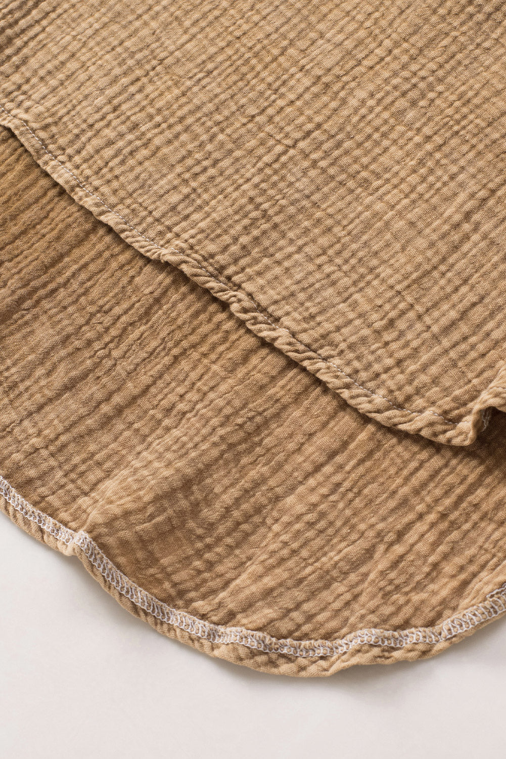 - The grey color adds a refreshing touch, while the loose and crinkled texture gives it a relaxed and effortless look.