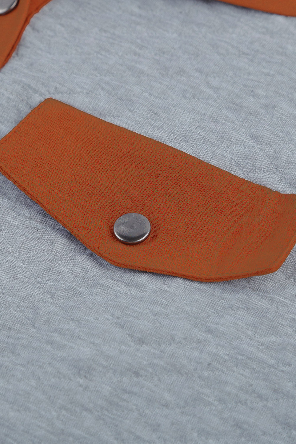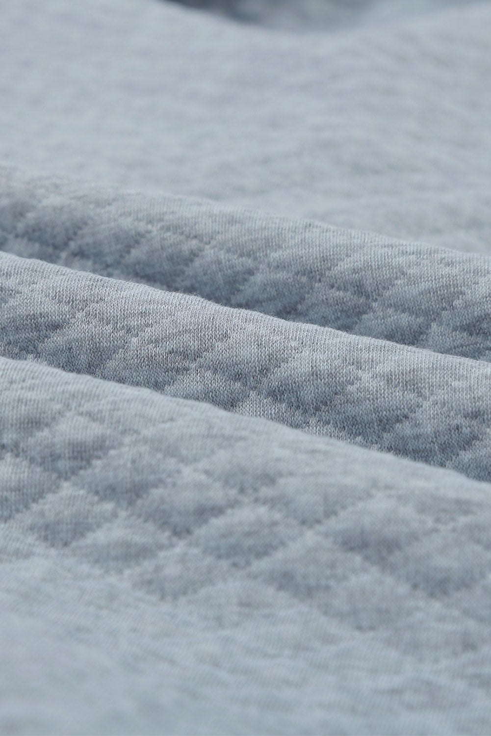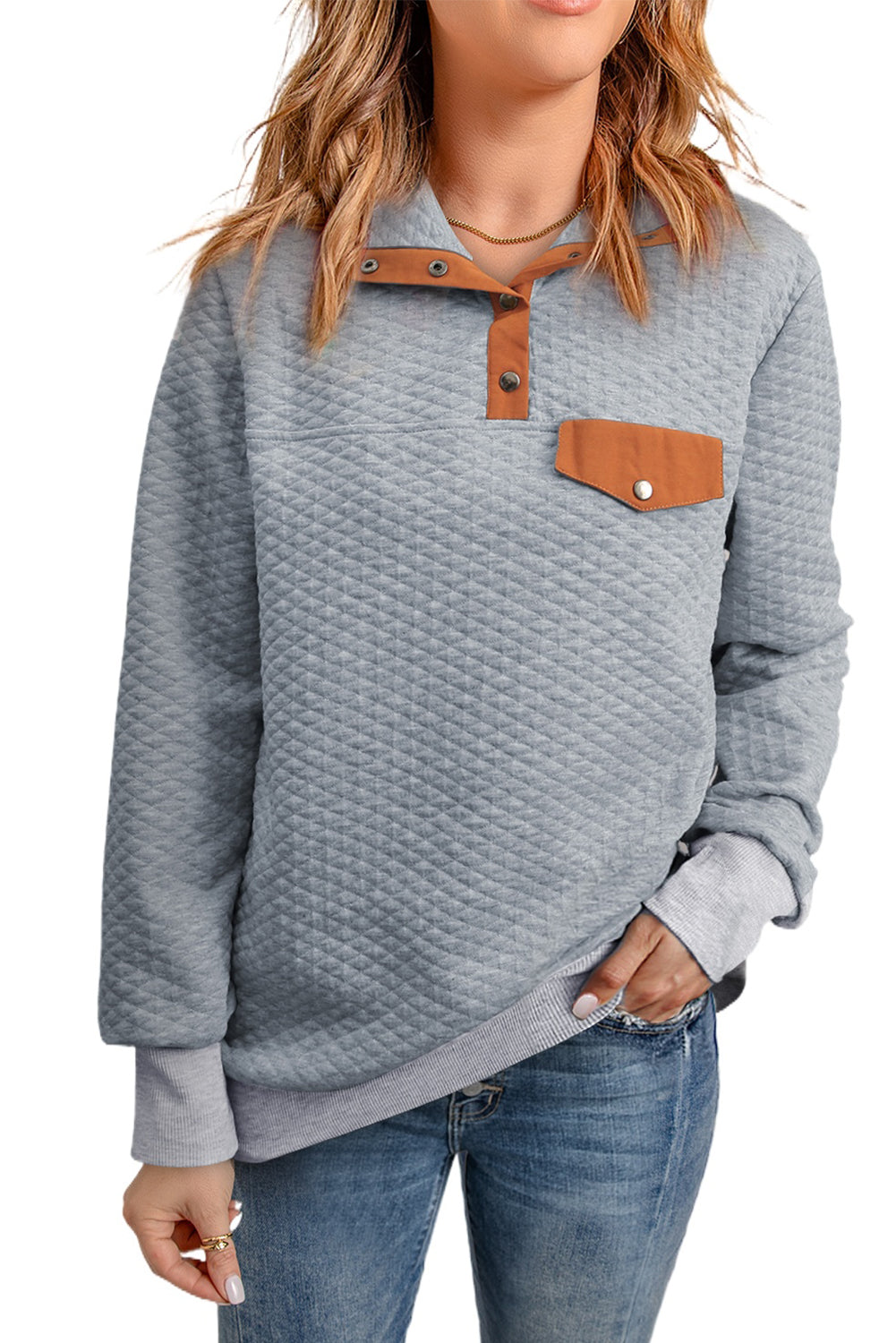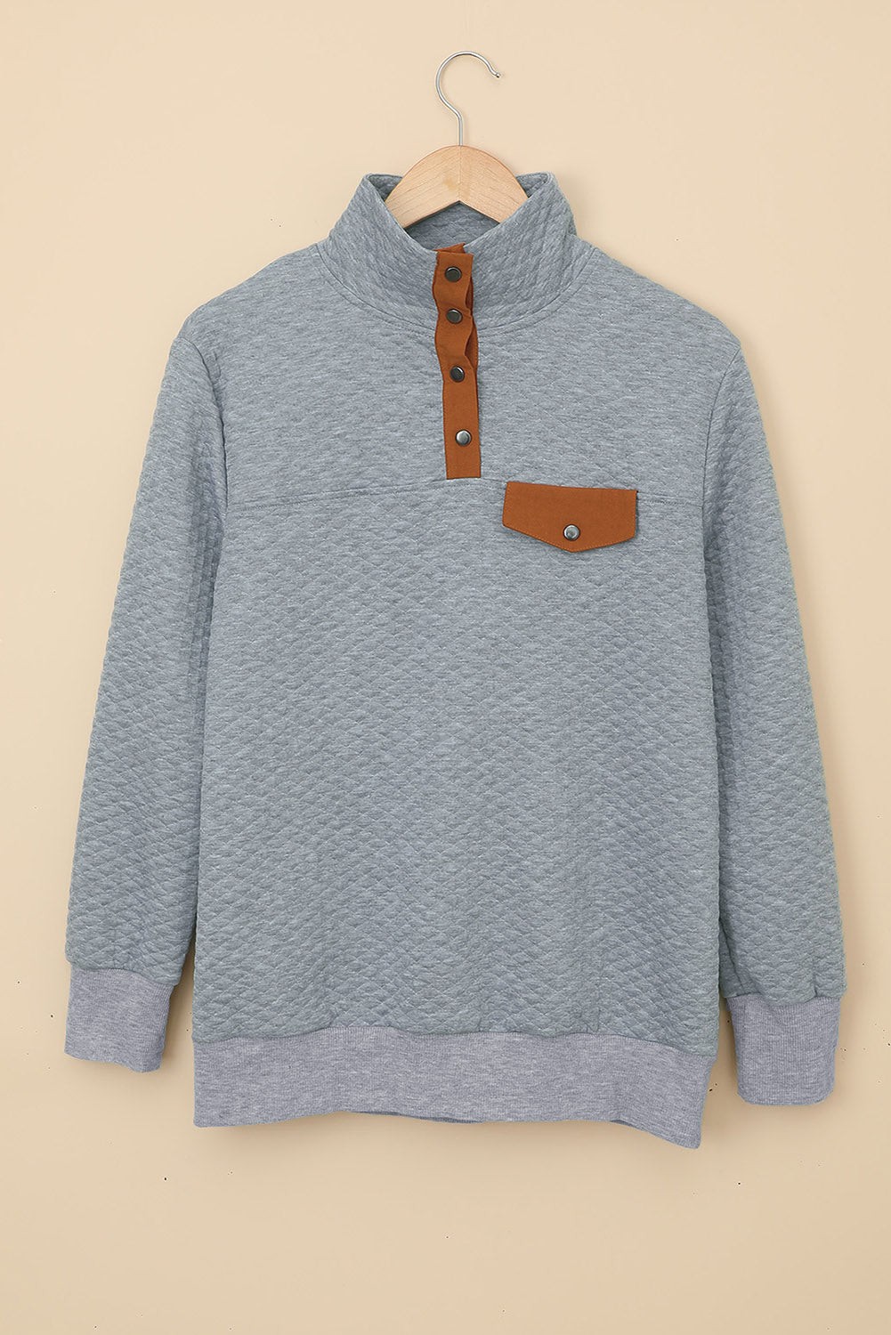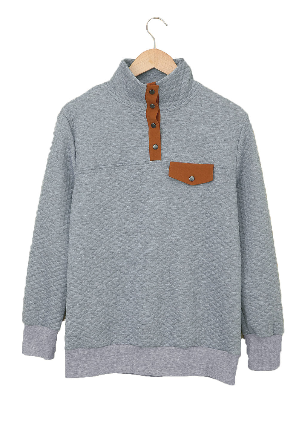 Grey Stand Collar Brown Quilted Snap Button Sweatshirt
