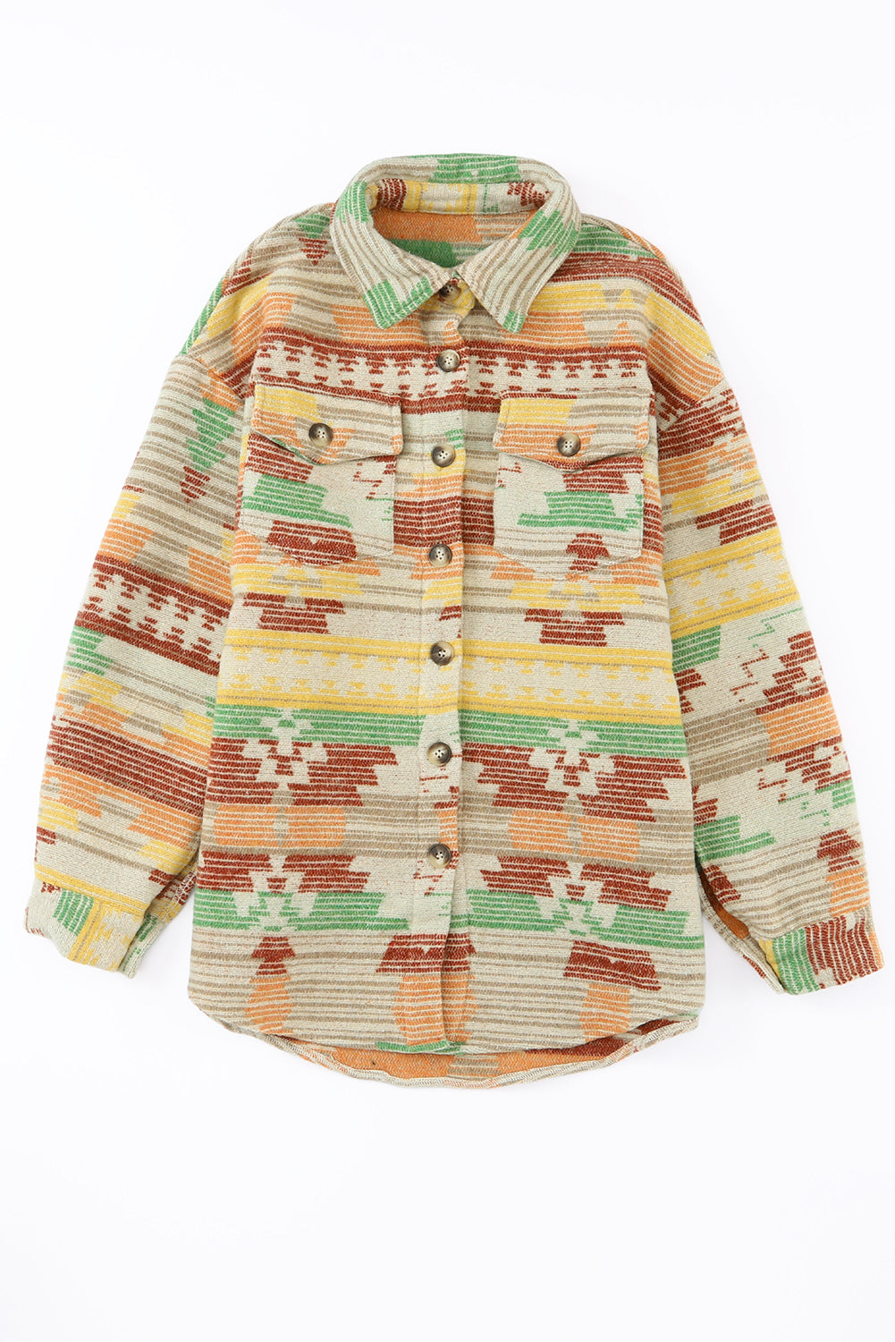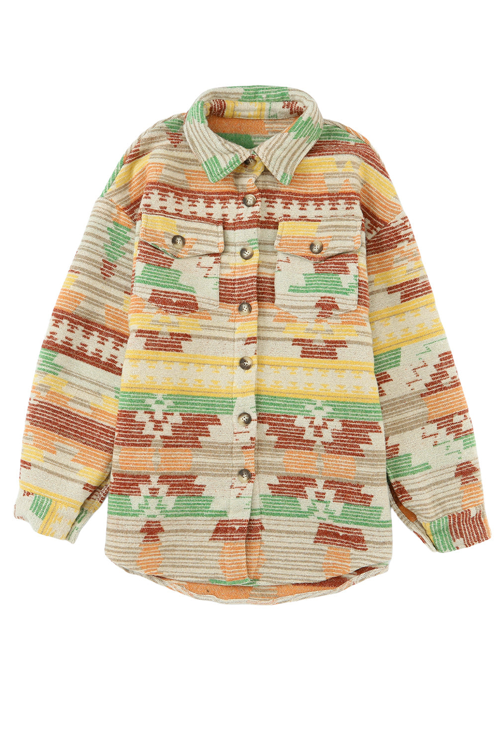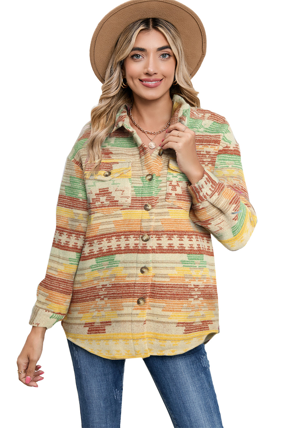 Multicolor Button Up Flap Pockets Geometric Jacket for Women