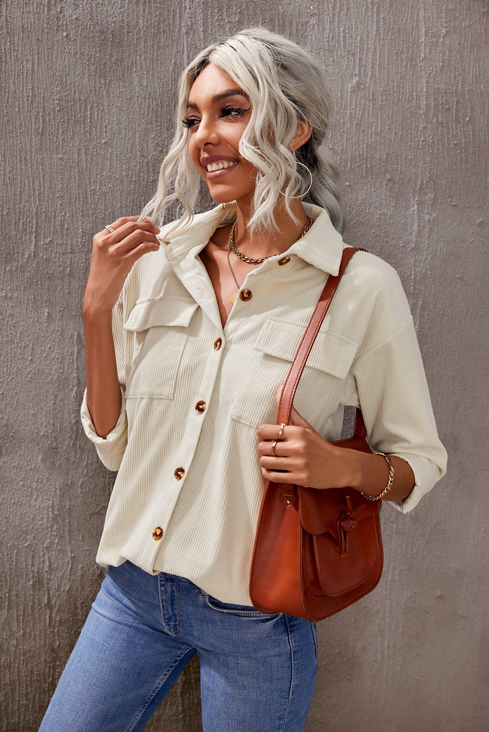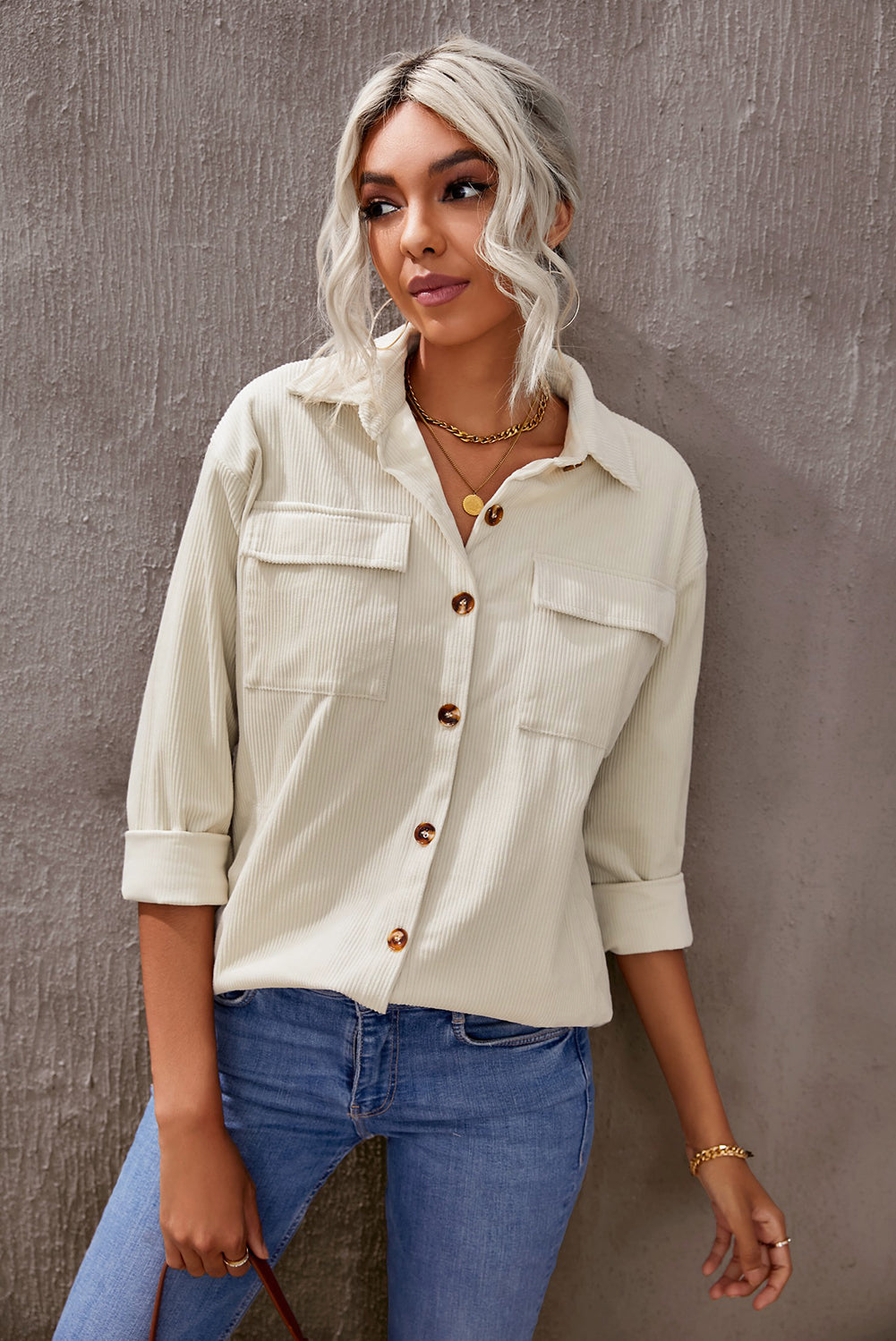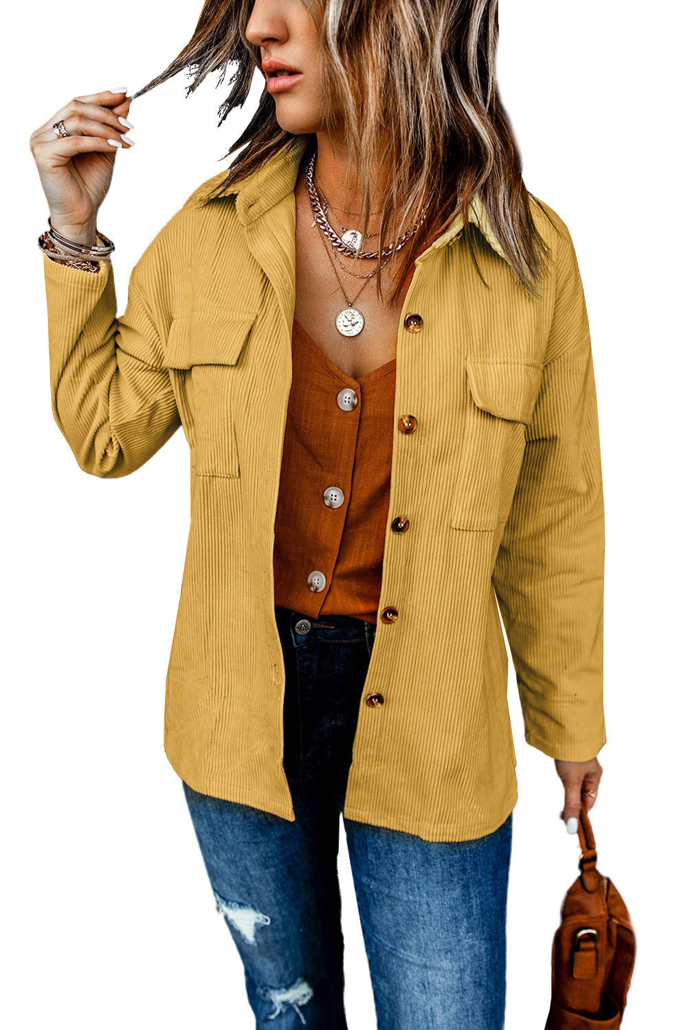 - Our Pocketed Button Ribbed Textured Shacket displays a textured, extremely soft fabric front that tucks flawlessly into your favorite denim