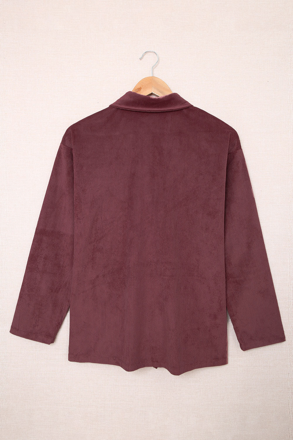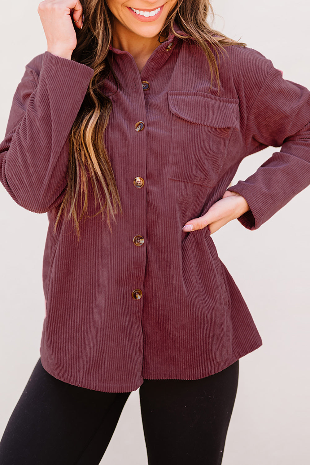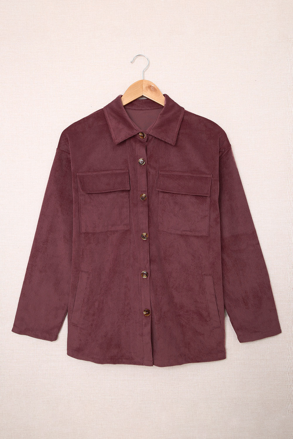 Plum Button Up Patch Pocket Corduroy Shacket