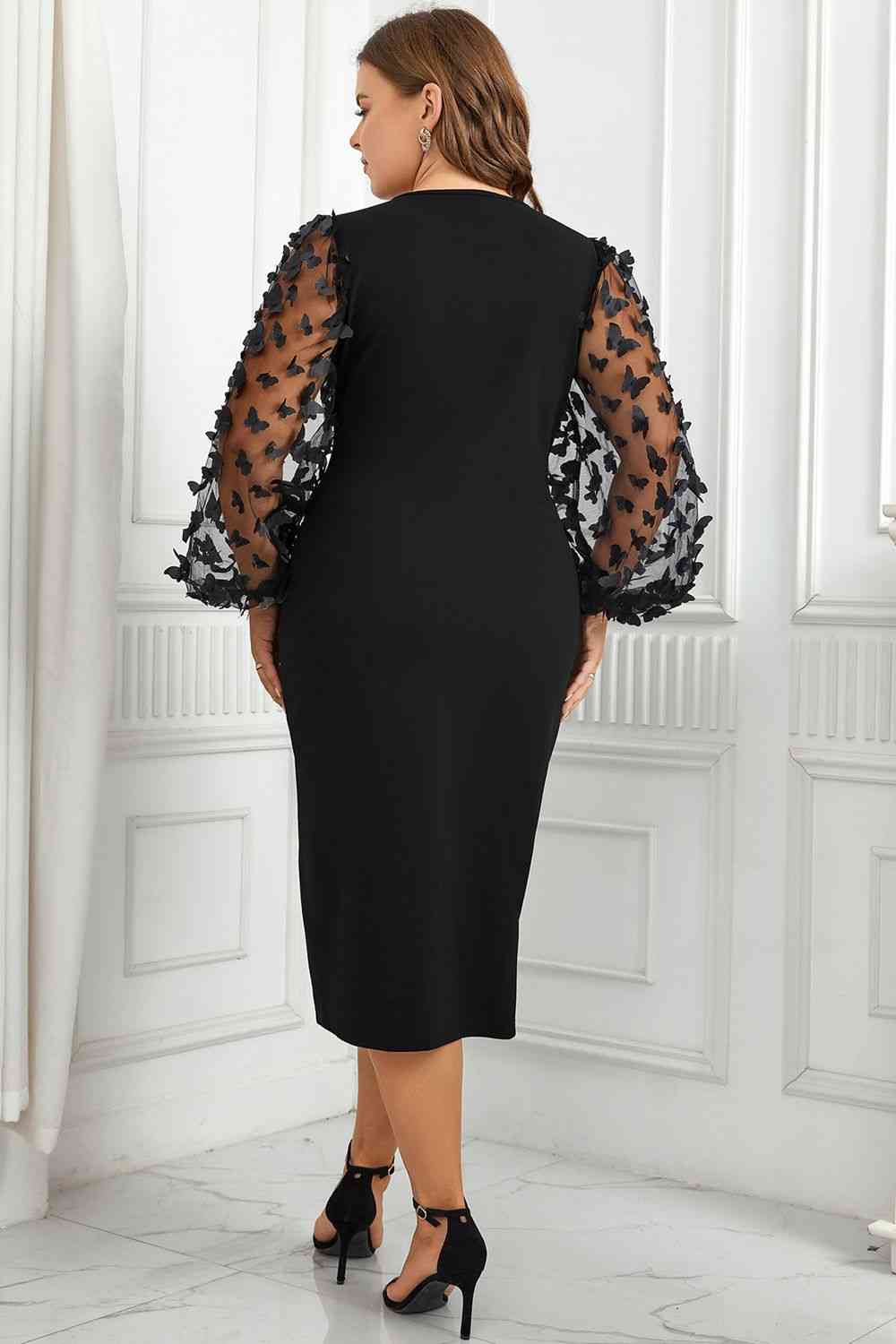 Plus Size Butterfly Applique Balloon Sleeve Slit Dress