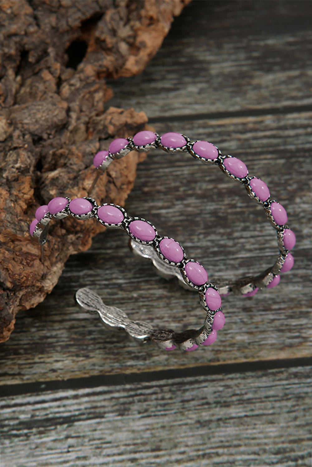 Sky Blue Turquoise Big Circle C-shaped Earrings