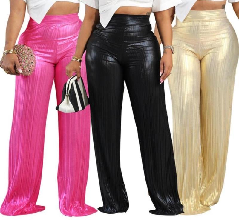 Slick pleated floor length pants