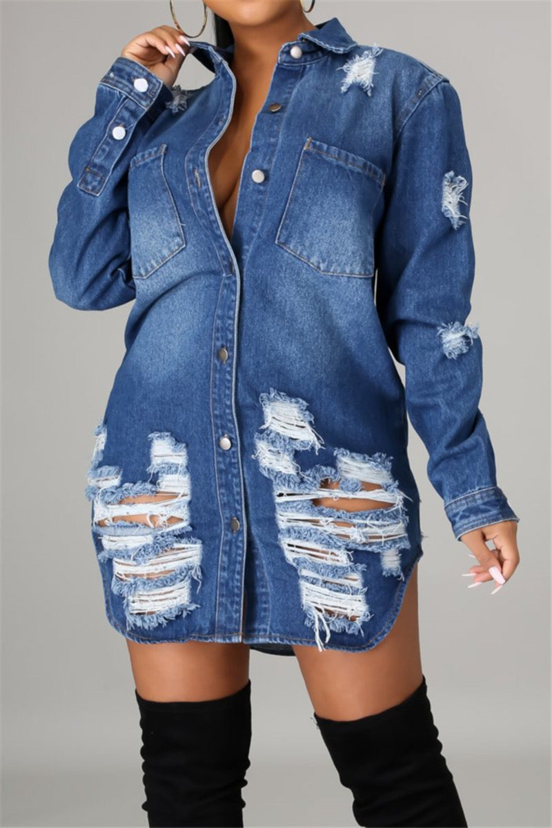 Totally Ripped Denim Shirt Dress