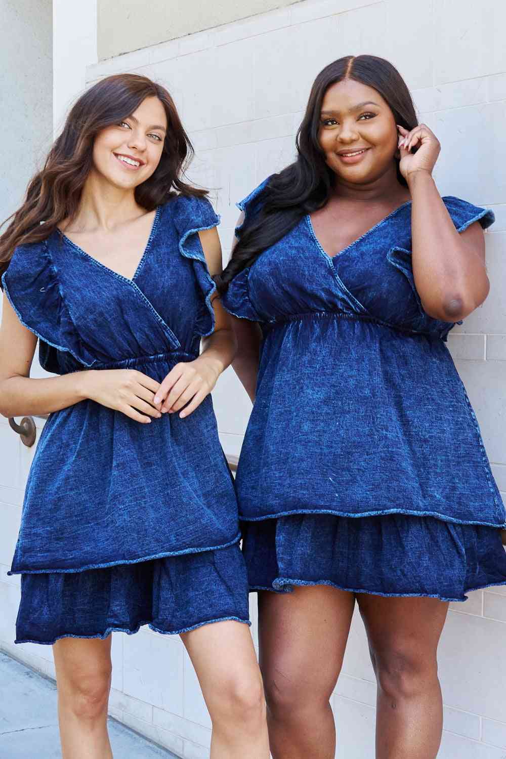 White Birch The Right Track Full Size Short Flutter Sleeve Mini Dress
